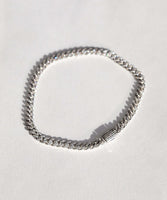 Curb chain bracelet in solid 14k gold with micro-pave diamonds. Hinged clasp.