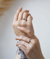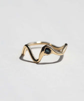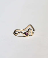 The Mini Ripple Ring with Sapphire is a rounded band with a variety of curves. Please leave a note with your preferred gemstone color of blue or purple.