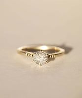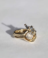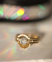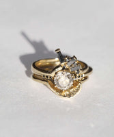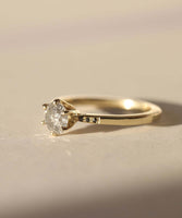 Specifications: Just under 1-carat natural round diamond as pictured, set in 14k white gold, 6 x 1mm black diamonds. Diamond textures and carat weight vary slightly per ring. Read more about our diamonds here