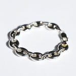 Puffed Anchor link bracelet in sterling silver, adjustable length.