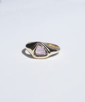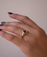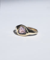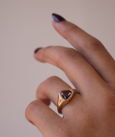 Specifications: Recycled 14k yellow gold. 1.88ct natural red sapphire. Back of band measures 3mm wide