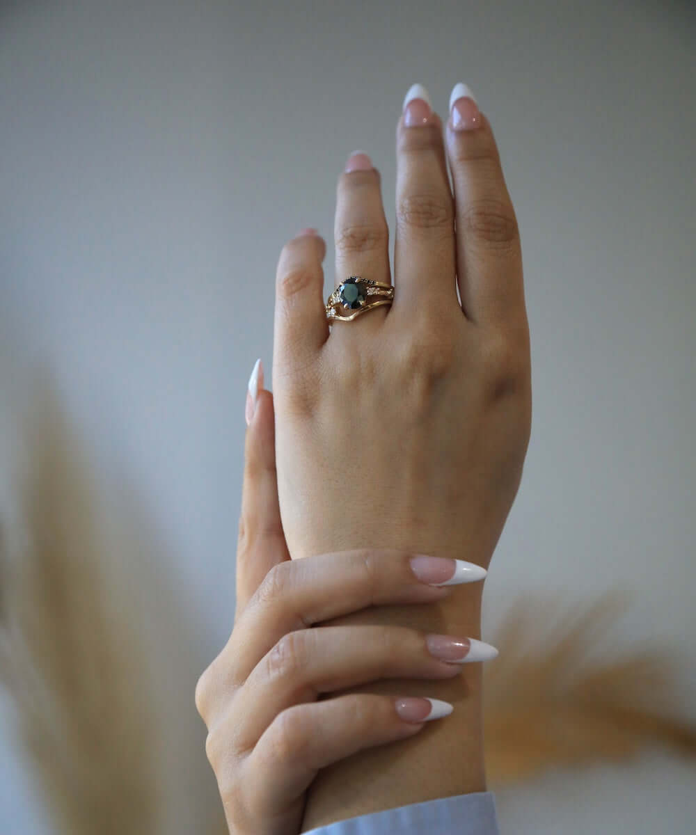 We craft our rings to order at Macha Studio in Brooklyn New York, View production and delivery times here.