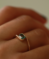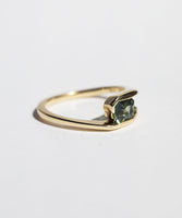 Sculptural twisted band with Australian sapphire set in a modified bezel setting.
