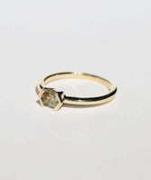 Hexagonal Montana Sapphire on a 14k yellow gold band.