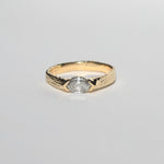 Specifications: 0.65ct salt & pepper diamond marquise on a solid 14k yellow gold textured band.