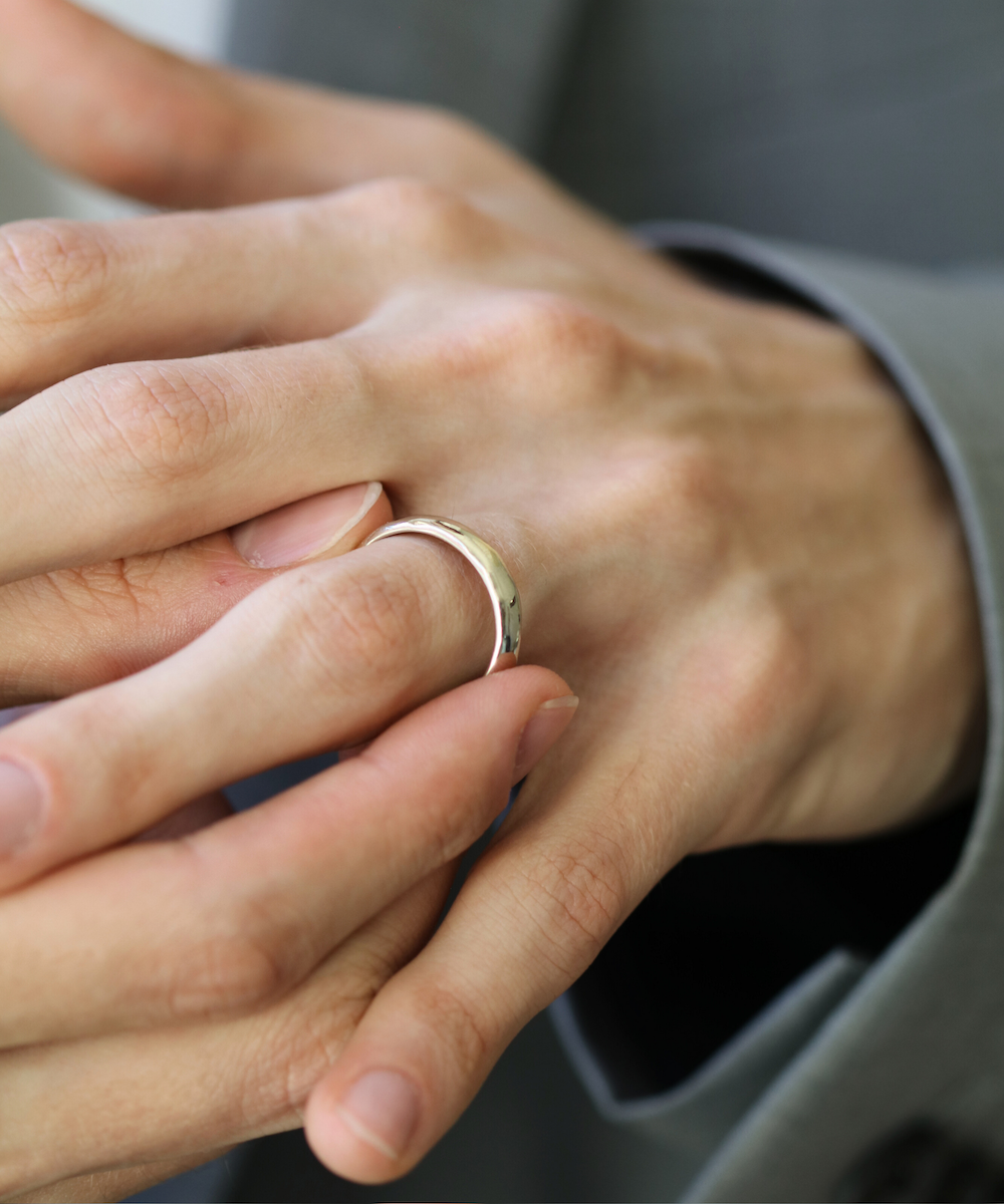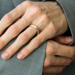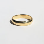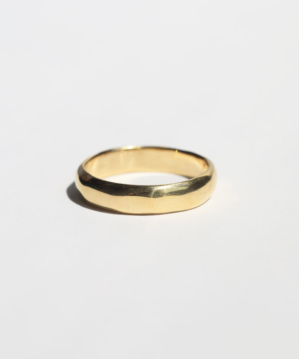 This wedding band was inspired by a 17th century gold hoop ring. Gently rounded, weighty, and high in quality. Each piece is individually handcrafted for the wearer, and left with a human touch from the maker. Interiors can be personally inscribed.