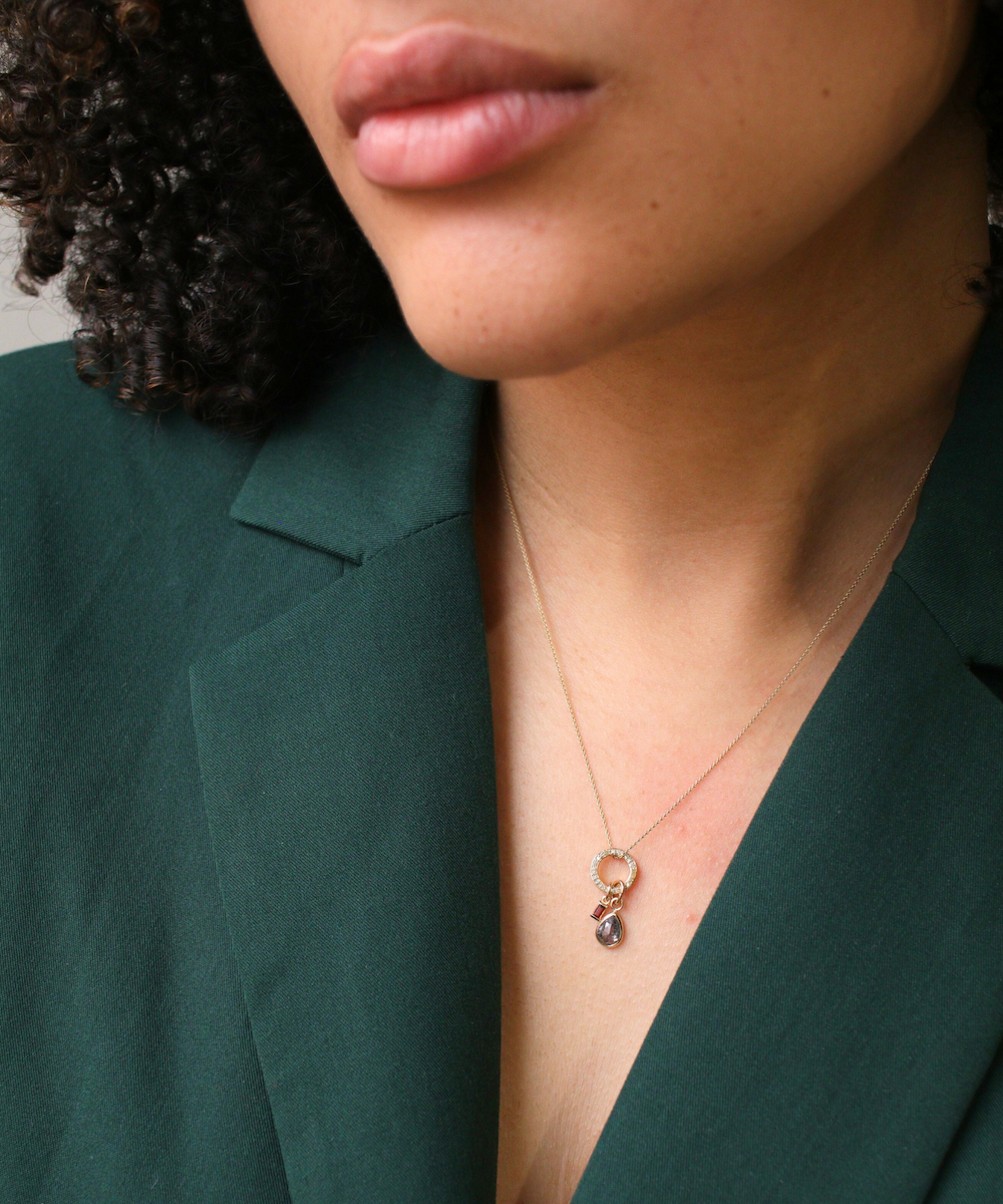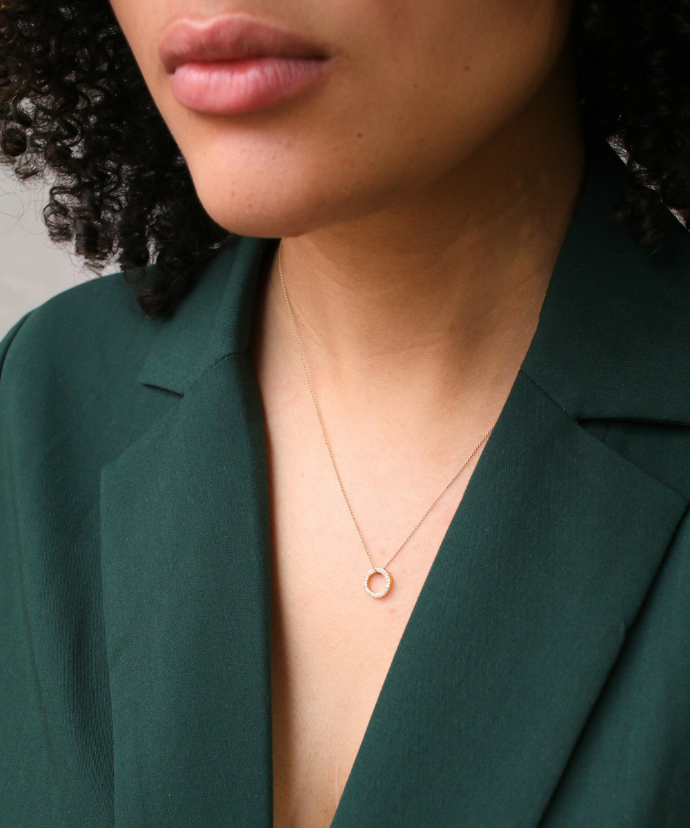 Round diamond studded carabiner for attaching pendants to chains or used as a clasp, Also a perfect standalone charm that can be attached to almost any chain.