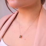 A voluminous bead pendant with sapphires set in 14k yellow gold.