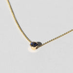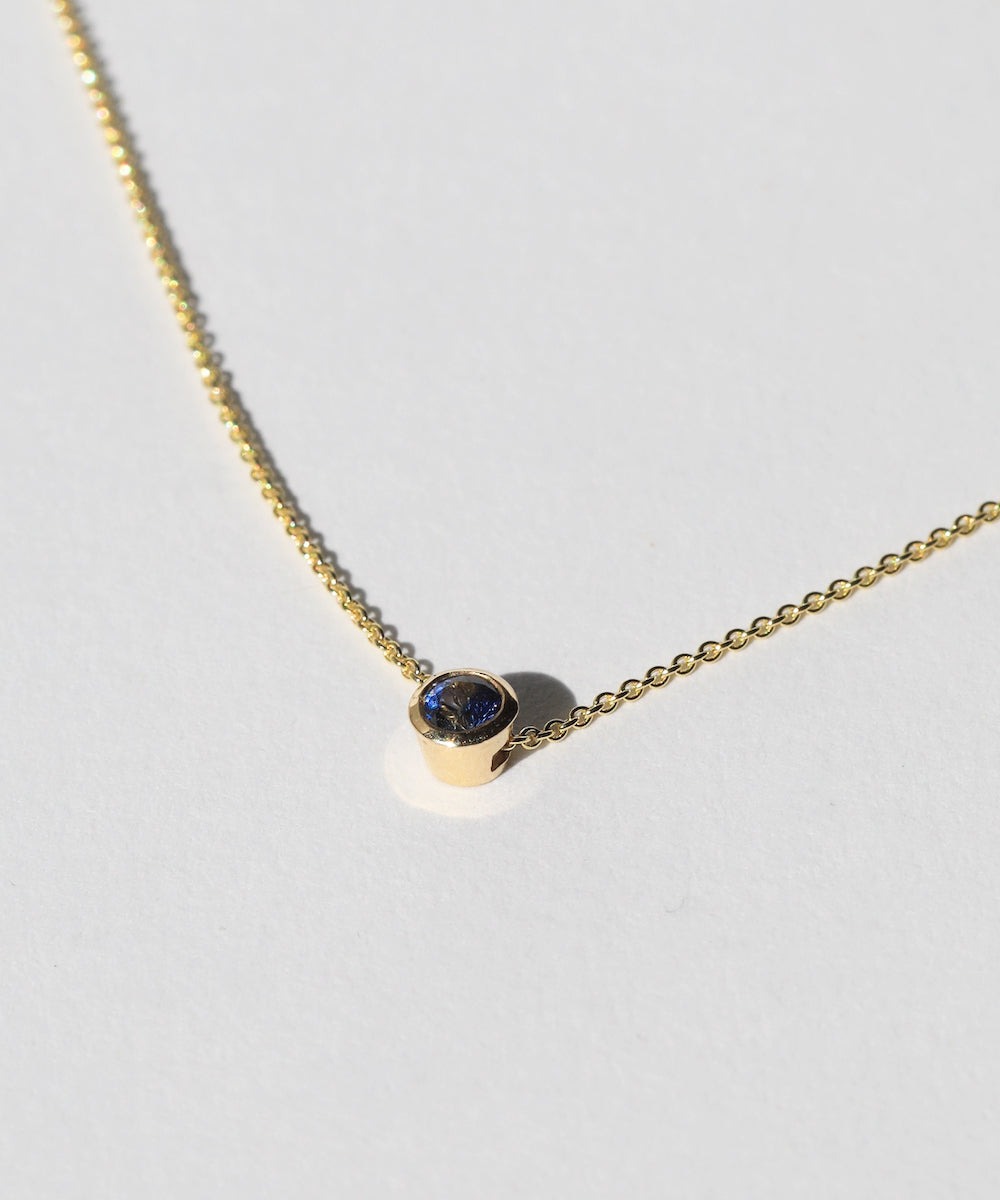 Specifications: 4mm blue sapphire in 14k gold, 16"14k yellow gold chain.