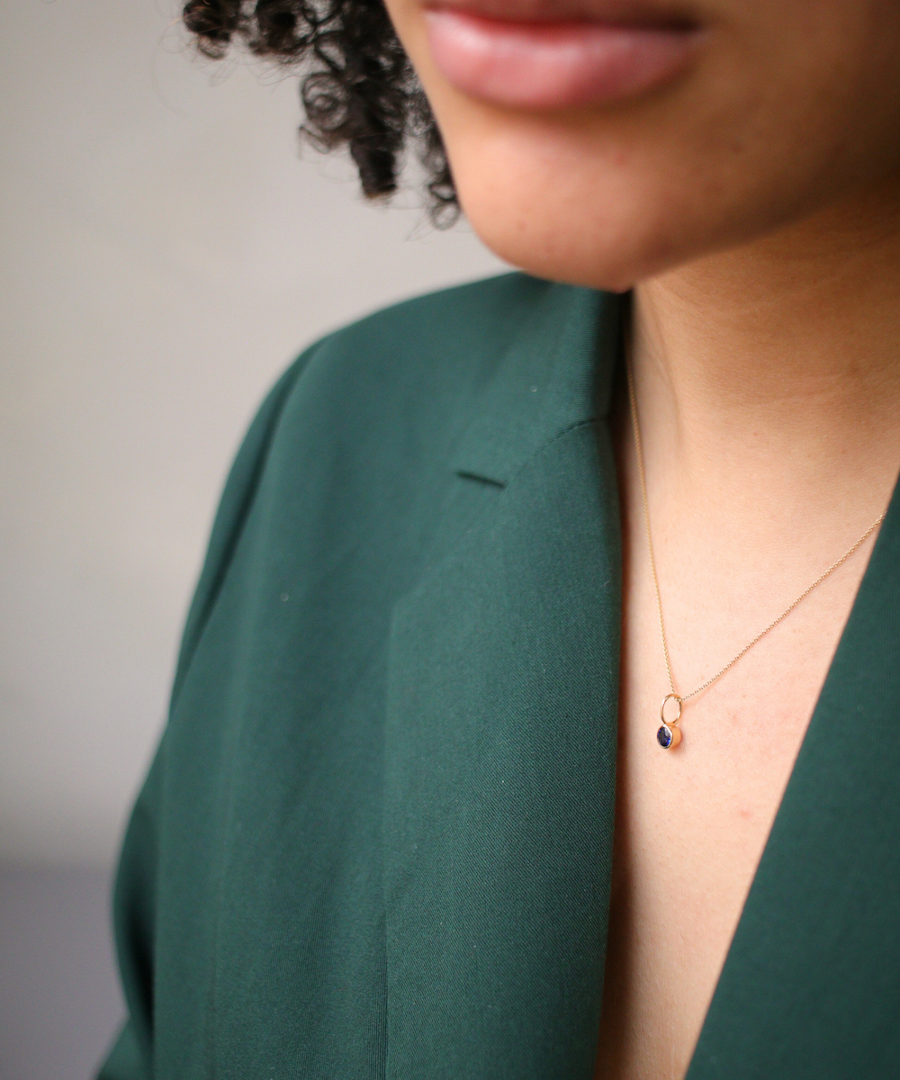 Blue colored sapphire pendant, can be easily affixed to most chains.