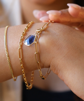 Textured, raw faceted oval sapphire slices with a unique blue color block effect, set in 14k gold. Each Sapphire is unique with internal textures and surface characteristics.