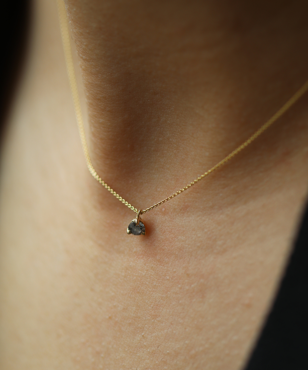 Specifications: 16" 14k yellow gold chain & setting, 3mm round salt & pepper diamond.