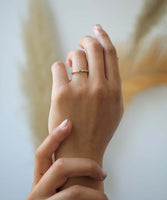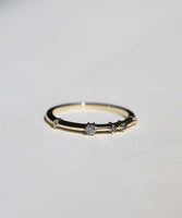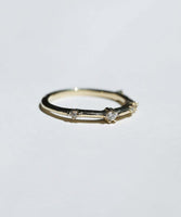 This piece features tiny white diamonds scattered along a delicate gold band, evoking asteroid belts and star clusters.