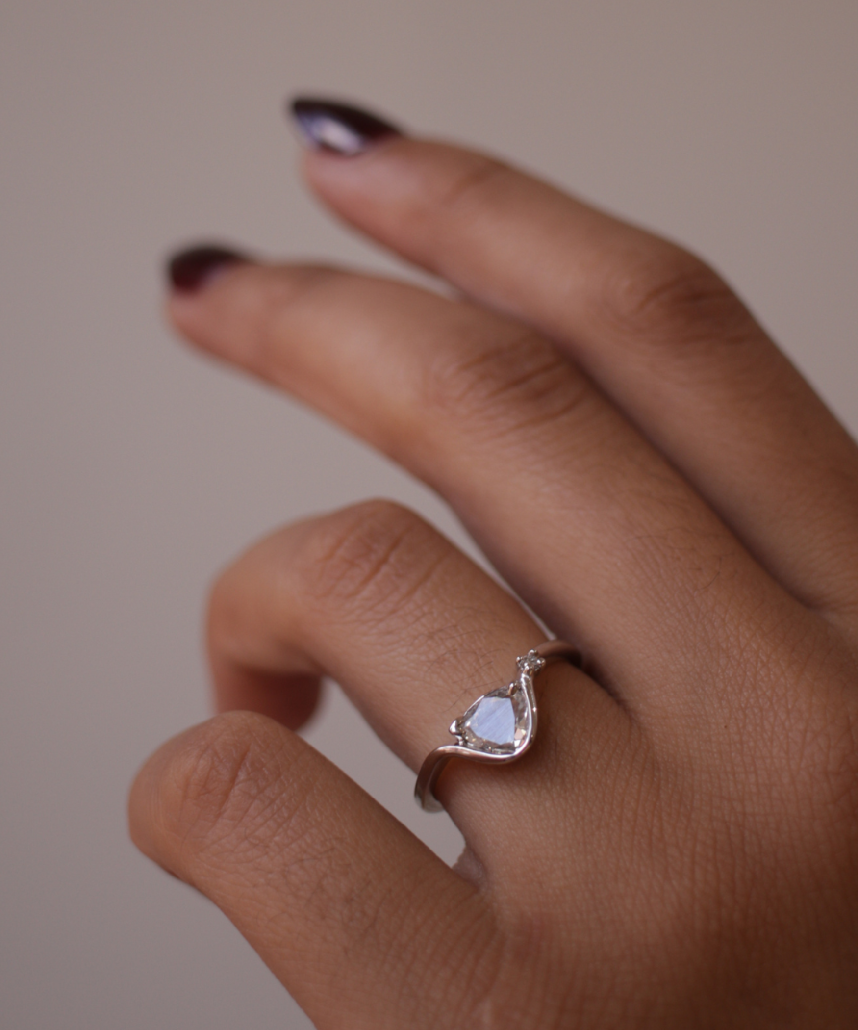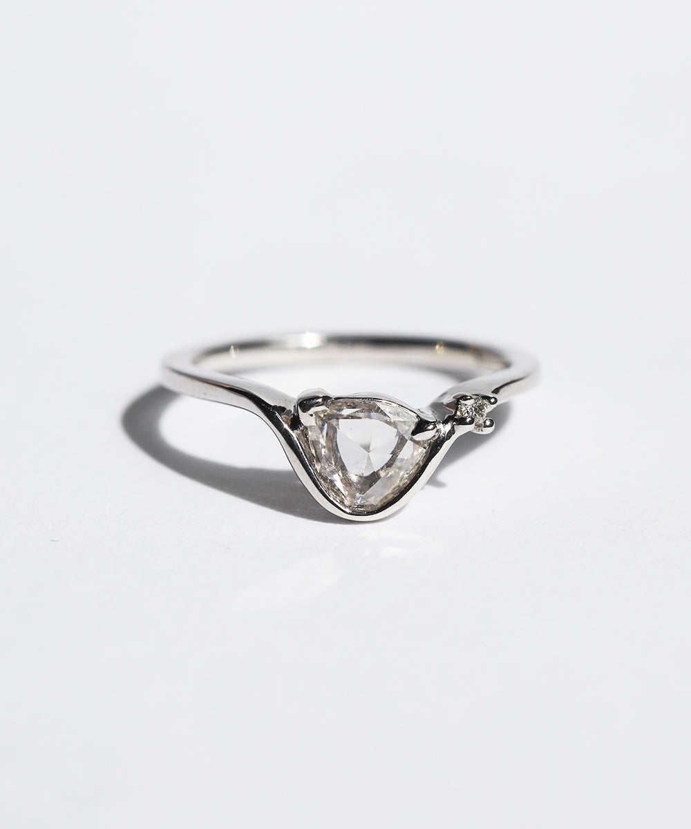 A one of a kind sculptural band with a tilted white diamond.
