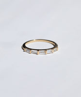 Specifications: 14k white or yellow gold or platinum with 0.5ct white baguette diamonds. Photo shows ring on size 4.5 finger.