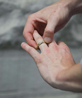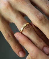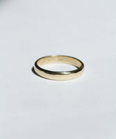 This wedding band was inspired by a 17th century gold hoop ring, gently rounded, and left with a human touch from the maker.