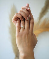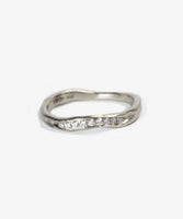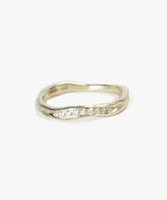 A natural uneven band inspired by organic forms and crafted in Gold. A series of sizes of white diamonds are set across 1/3 of the band.