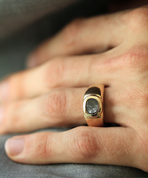 Specifications: Solid 14k yellow gold. Approx 2ct salt and pepper cushion cut diamond. Face of ring measures approx 10mm wide. Back of band measures 3mm wide