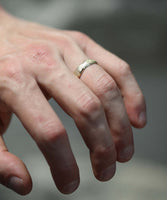 The Ragged Bands are organic versions of traditional wedding bands. The texture, originally created by accident, is carved on each ring individually so no two rings are ever the same.