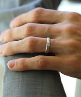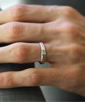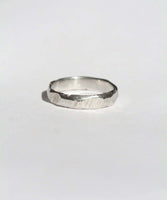 The Ragged series are organic versions of traditional wedding bands. The texture, originally created by accident, is carved on each ring individually so no two rings are ever the same.