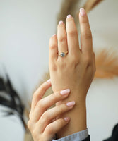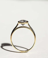 A Salt & Pepper diamond in a high bezel setting revealing the side profile of the ring