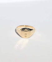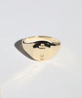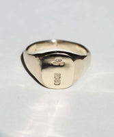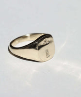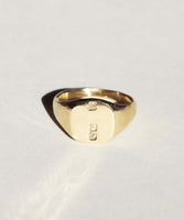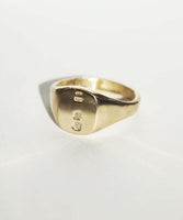 Limited Edition classic small square signet ring in gold with British hallmarks. The crown representing solid gold.