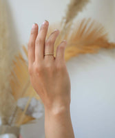 Specifications: 14k yellow, white gold or rose gold. Photo shows 1.5mm width. Images on hand show 1.5mm and 2mm widths on a size 4.5 finger.