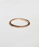 The Ragged Series are organic versions of traditional wedding bands. The texture, originally created by accident, is carved on each ring individually so no two rings are ever the same.