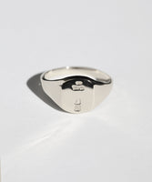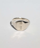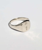Limited Edition classic small square signet ring in gold with British hallmarks. The crown representing solid gold.
