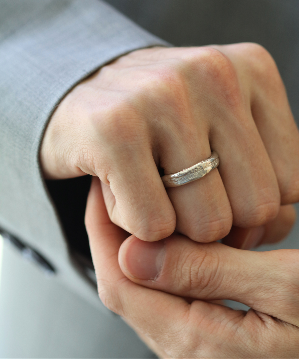 Specifications: Photo shows 5mm width in Platinum –– see also our listing for the narrow molten band in platinum.