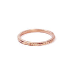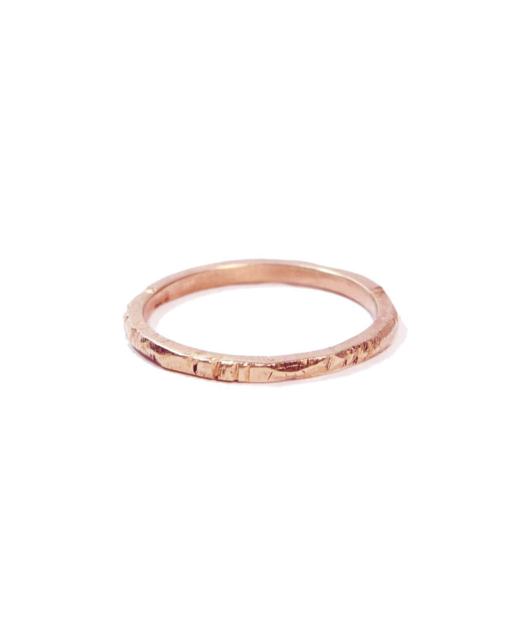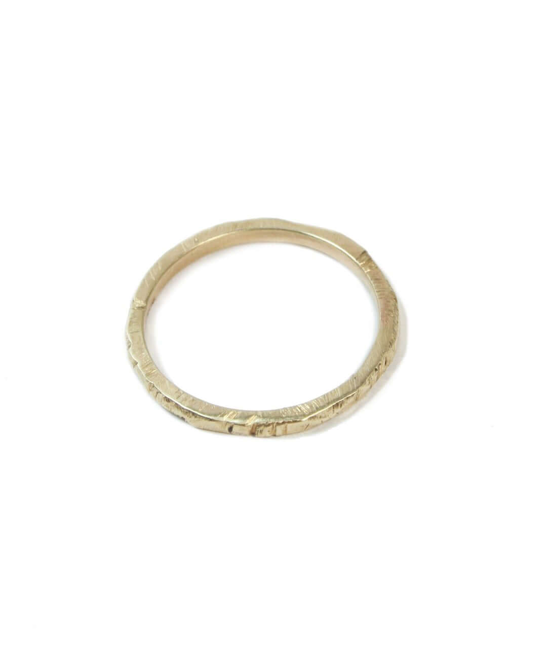 The Ragged Series are organic versions of traditional wedding bands. The texture, originally created by accident, is carved on each ring individually so no two rings are ever the same.
