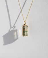 Specifications: Approx 3.6ct natural tourmaline in a recycled 14k yellow gold modified bezel setting. Pendant is approximately 15x7 mm. Jump is 5mm.