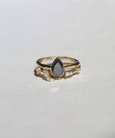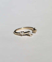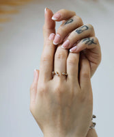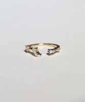 This piece features tiny white diamonds scattered along a delicate gold band, evoking asteroid belts and star clusters. Crafted in recycled gold and reclaimed diamonds. Stacks well with a large solitaire.