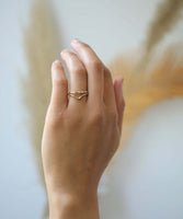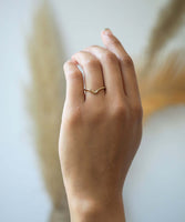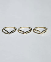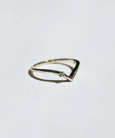 V shaped 14k yellow gold band with tiny white diamond macha studio brooklyn new york