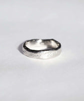A natural, uneven band inspired by organic forms and crafted in Platinum.