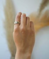 A slim gold ring, with a raw finished diamond filled ravine