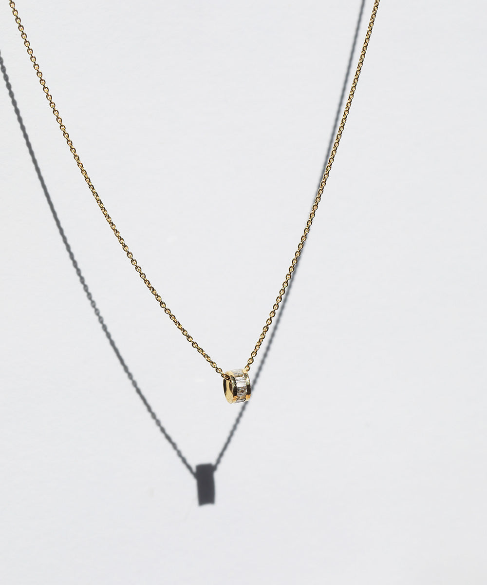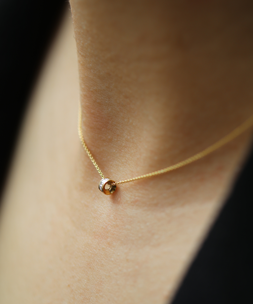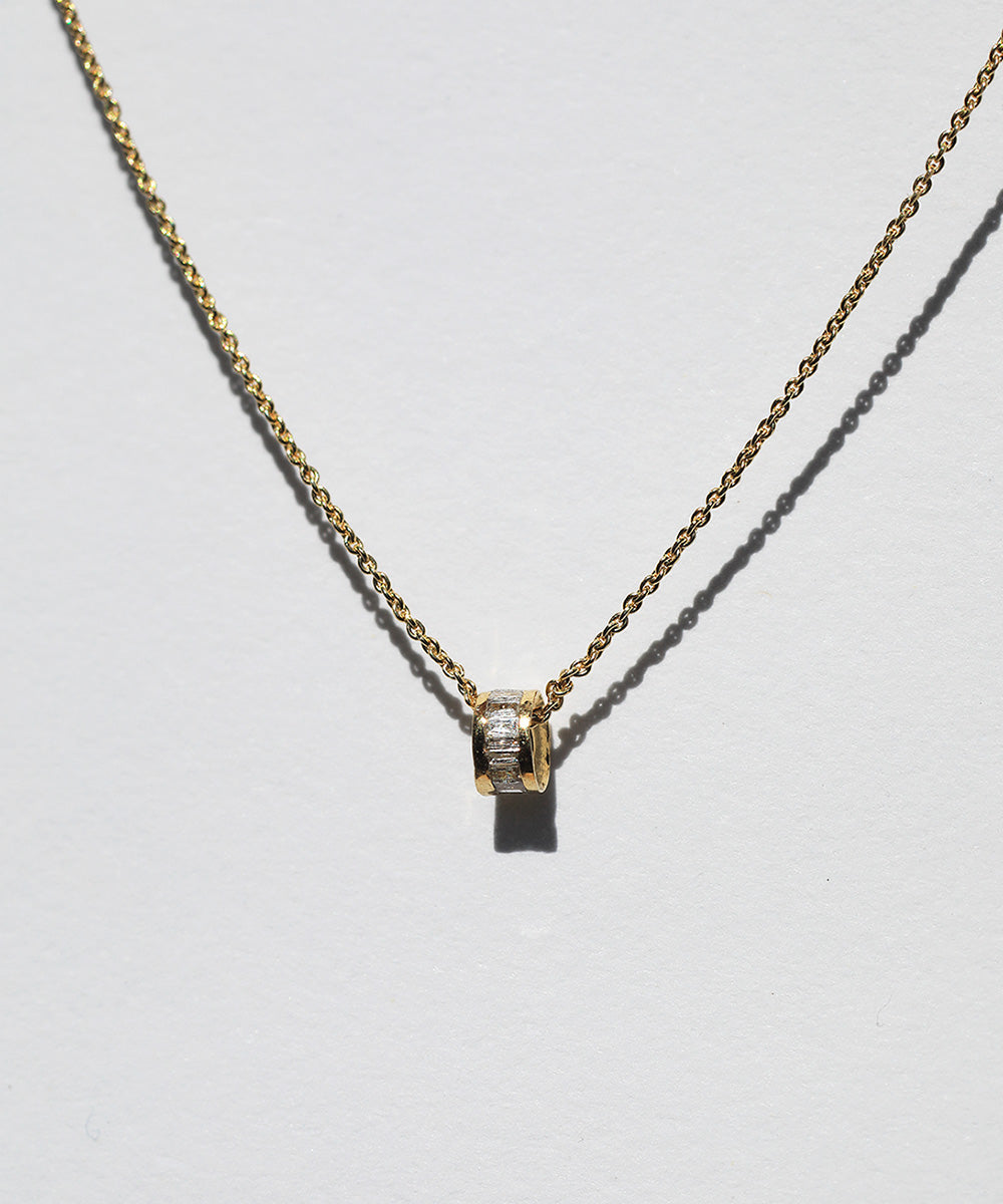 Barrel Pendant necklace, with invisible set diamonds in 14k yellow gold