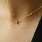 Specifications: 2x4mm, Solid 14k gold. Approx 0.10ct white diamonds. 16" chain