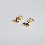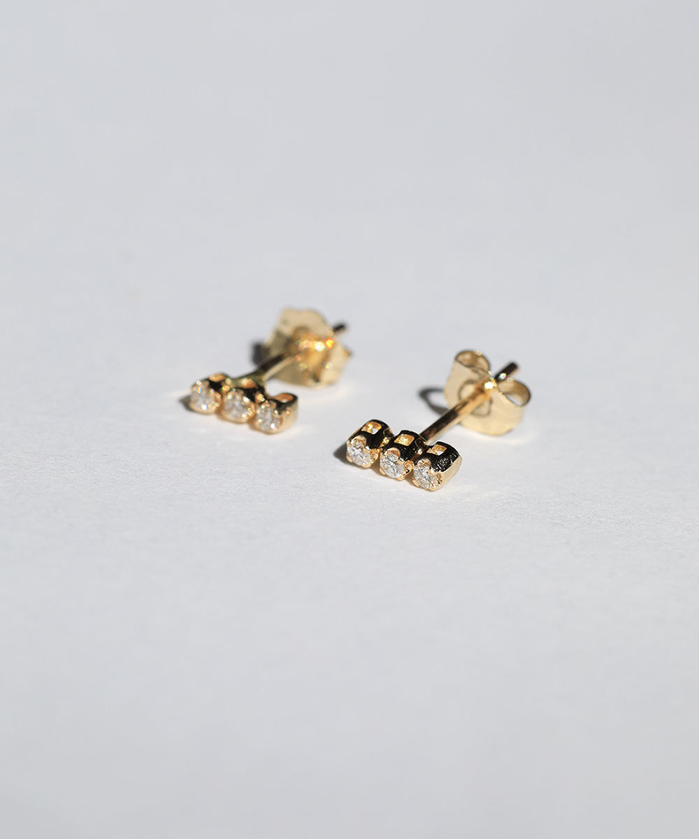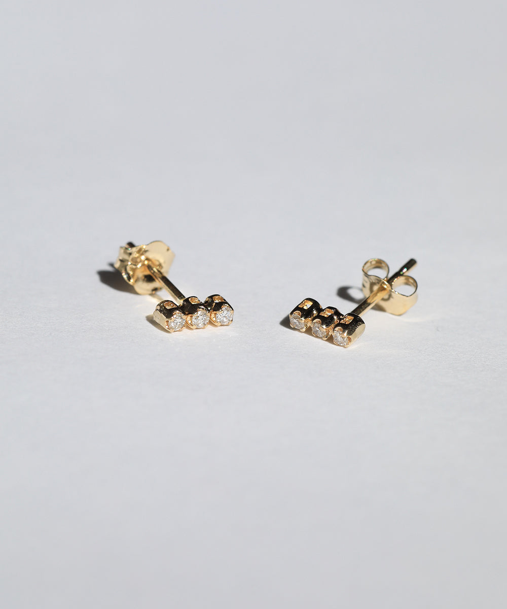 Specifications: 14k yellow gold. 3 x 1.5mm diamonds, Just over 5mm stud.