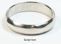 We can only engrave bands 2mm+ in width. Block font upper case recommended for 2mm width bands.