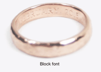 Engraving up to 25 characters in block or script font. Please specify upper or lower case, and the ring you would like it on if you are purchasing more than one item.