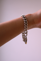 Curb chain bracelet with heart locket closure, and chain connector, likely 1960s.