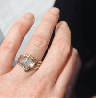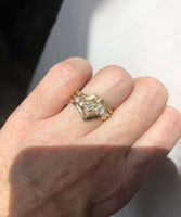 Raw cut sculptured ring inspired by organic forms, designed to sit next to our asymmetric rings